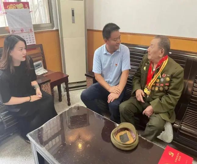 交談中大家了解到,老人是1925年出生,17歲就參加革命工作,在新四軍3師8旅某團當通訊員,后在不同部隊任排長、政治指導員、連長等職。