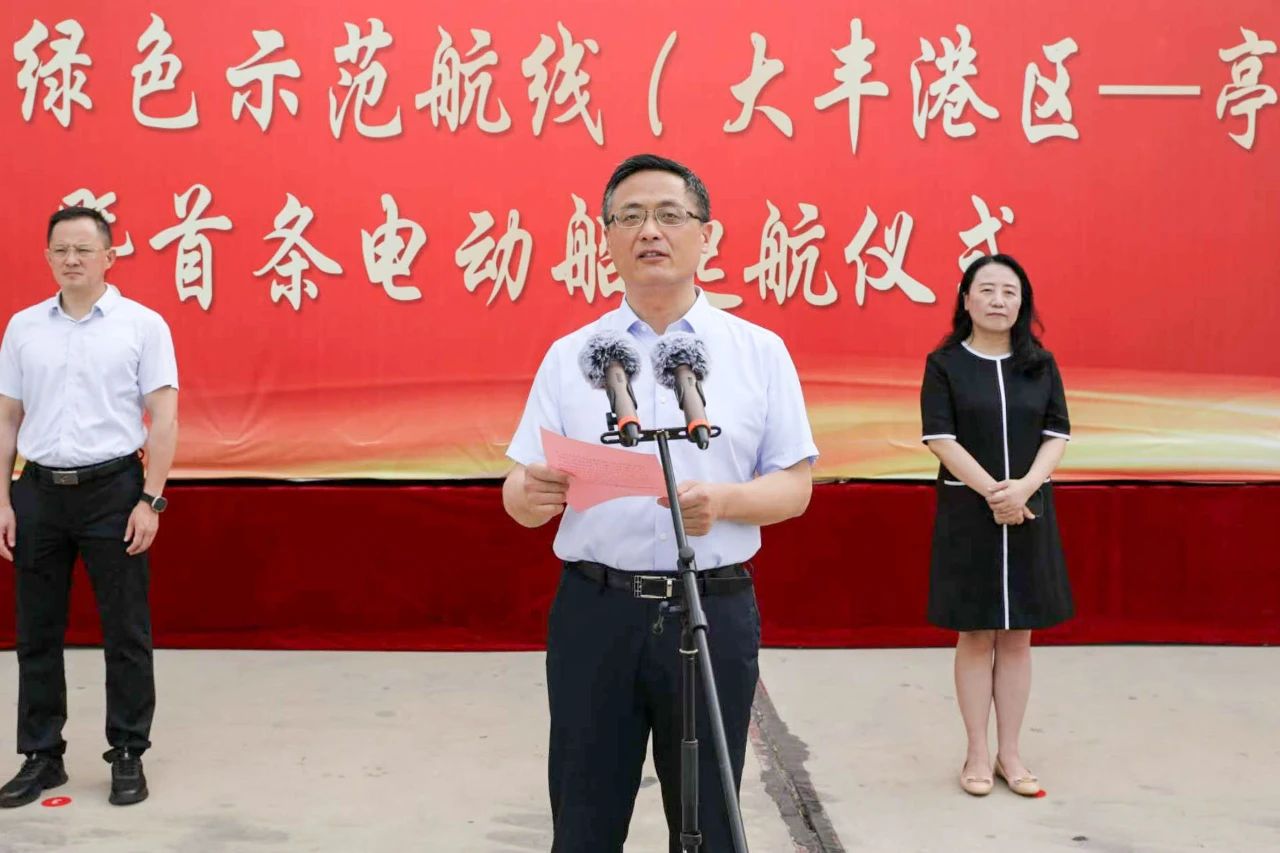 陸帥表示,綠色發(fā)展是高質(zhì)量發(fā)展的底色,綠色示范航線的開通及電動船的啟用是落實集團關(guān)于構(gòu)建綠色、生態(tài)、智慧、平安、美麗“五新示范港”的有力抓手,是鹽城港深入輻射淮河生態(tài)經(jīng)濟帶、全力打造淮河生態(tài)經(jīng)濟帶出海門戶的生動實踐,為實現(xiàn)河海聯(lián)運一體化發(fā)展提供了有力支撐,為落實“碳達峰、碳中和”等中長期戰(zhàn)略目標奠定了堅實基礎(chǔ)。集團全體干部職工要以今天的開航為新起點,發(fā)揚開拓創(chuàng)新“拓荒?!本?,主動下好淮河戰(zhàn)略的“先手棋”“制勝棋”“長遠棋”,充分發(fā)揮江蘇獨特的水韻之美、水運之利,為腹地企業(yè)提供更加經(jīng)濟、便捷、可靠的物流服務(wù),積極策應(yīng)綠色低碳發(fā)展新趨勢,全力在發(fā)展新質(zhì)生產(chǎn)力進程中尋求新突破,接續(xù)奮斗、再立新功,奮力為鹽城勇當全省發(fā)展新質(zhì)生產(chǎn)力重要陣地“碳路先鋒”作出更大貢獻。