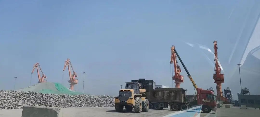 碼頭上,車來車往,裝船卸船,一片繁忙。一線員工們各司其職,熟練地操作著機(jī)械設(shè)備,現(xiàn)場(chǎng)作業(yè)井然有序。