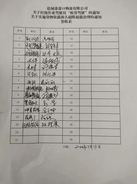 為全面做好港區(qū)作業(yè)車輛超限超載治理工作,切實(shí)加大貨運(yùn)源頭治理力度,保障道路交通運(yùn)輸安全。近期,鹽城港港口公司物流公司認(rèn)真組織職工學(xué)習(xí)貫徹國務(wù)院安委會(huì)安全生產(chǎn)“十五條”硬措施和鹽城港集團(tuán)“三位一體”工作部署要求,堅(jiān)持“人民至上,生命至上”的理念,嚴(yán)格落實(shí)《關(guān)于實(shí)施貨物裝載源頭超限超載的通知》、《關(guān)于杜絕作業(yè)駕駛員“疲勞駕駛”的通知》等文件要求,全力開展安全運(yùn)輸“三步走”工作。