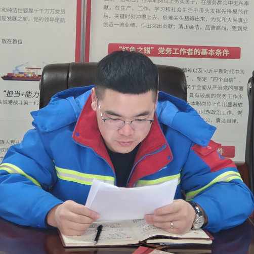 入黨十余年,轉(zhuǎn)眼我也到了退休的年紀(jì),很榮幸見證了射陽港區(qū)從起步到融入鹽城港集團(tuán)高質(zhì)量發(fā)展的整個(gè)歷程。乘著建設(shè)“五新示范港”的東風(fēng),我們這樣的“老頭子”也能學(xué)習(xí)到線上模塊、小程序的搭建和使用流程,我將持續(xù)發(fā)以黨員身份嚴(yán)格要求自己,守好最后一班崗。