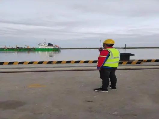 船舶輕輕靠岸,駐船調(diào)度員作為連接港方與船方的重要橋梁一如既往堅(jiān)守在碼頭作業(yè)生產(chǎn)的第一線組織、協(xié)調(diào)、溝通、監(jiān)督現(xiàn)場(chǎng)的作業(yè)環(huán)節(jié),全力確?!豢恳浑x’制度落地見效。