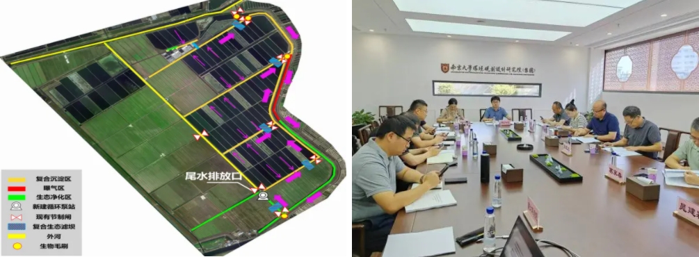 為明確區(qū)域尾水治理方案,農(nóng)業(yè)科技集團通過公開招標,委托南京大學環(huán)境規(guī)劃設計研究院集團股份公司編制《東方綠洲養(yǎng)殖區(qū)域養(yǎng)殖尾水治理工程實施方案》《生物多樣性評價報告》以及《有限人為活動論證報告》。為了更快、更好編制方案,農(nóng)業(yè)科技集團明確專人和編制單位深入養(yǎng)殖區(qū),詳細了解區(qū)域溝塘分布、養(yǎng)殖品種、數(shù)量、密度、尾水排放集中期、水量及周邊企業(yè)污水排放等情況,對項目區(qū)內(nèi)6處點位水質(zhì)進行取樣檢測。通過現(xiàn)場情況分析,計劃建設尾水凈化區(qū)約1746.93畝(占養(yǎng)殖凈面積約11.65%,占整個養(yǎng)殖區(qū)域9.95%),尾水總停留時間11.75天,日處理能力約20萬方,確保養(yǎng)殖尾水排放達到《池塘養(yǎng)殖尾水排放標準》(DB32/4043-2021)淡水受納水域一級標準。