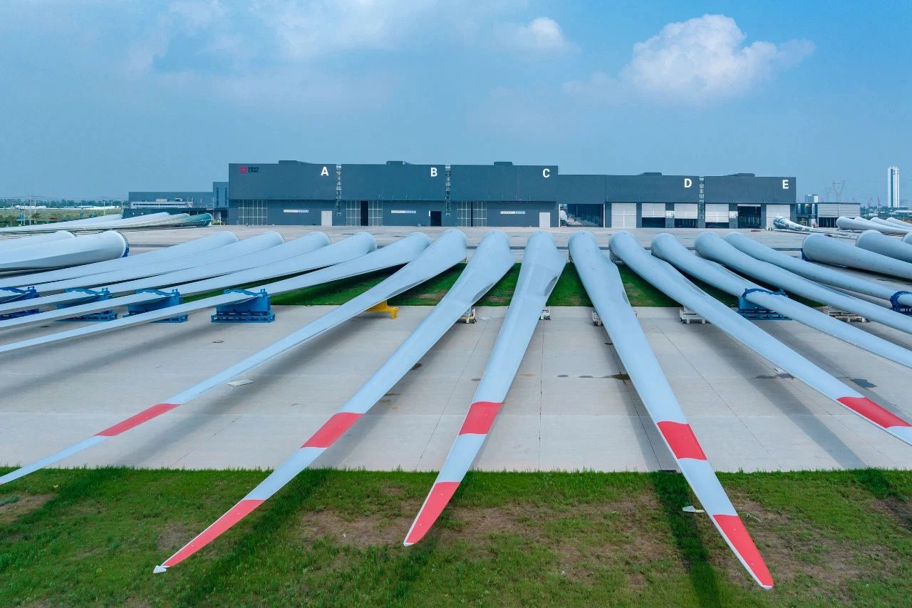 風(fēng)能是一種清潔可再生能源,風(fēng)力發(fā)電近年來越發(fā)受到世界各國重視。鹽城港作為華東地區(qū)大型國產(chǎn)風(fēng)電葉片的主要出口港之一,風(fēng)電葉片主要出口到共建“一帶一路”國家。此次共起運20套60件風(fēng)電葉片及其附屬配件,其中葉片長75.8米,貨物總體積超6萬余立方米,總價值約6000萬元,是中國專門為國際市場(印度)需求研發(fā)的陸上風(fēng)電設(shè)備。據(jù)鹽城出入境邊防檢查站統(tǒng)計,2024年鹽城港射陽港區(qū)累計完成風(fēng)電裝備裝卸量936.85萬噸,同比增長23.67%,外貿(mào)風(fēng)電完成19.01萬噸,同比增長100%。