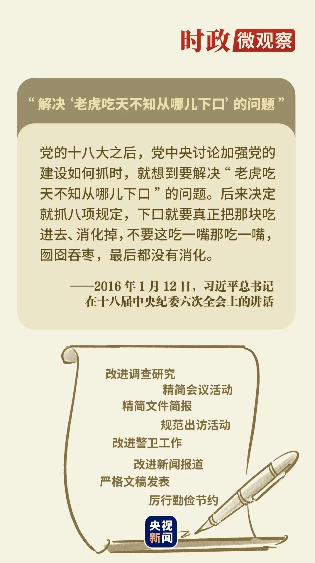 《時政微觀察》選取習(xí)近平總書記關(guān)于中央八項規(guī)定的生動論述,闡明其中深意。