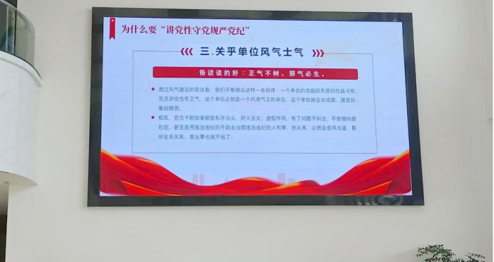 嚴(yán)格規(guī)矩意識(shí)。定期開展紀(jì)律規(guī)矩專題教育,深刻剖析典型案例,以案為鑒敲響廉潔警鐘;將辦公走廊打造成“廉政文化長廊”;開辟融思想性、政策性、觀賞性、教育性于一體的廉政宣傳陣地,讓廉潔文化入腦入心更促行。