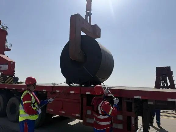 針對鋼卷裝卸特性,港區(qū)優(yōu)化全流程跟蹤服務模式??茖W規(guī)劃裝卸方案,實現(xiàn)門機與運輸車輛的高效協(xié)同;同步建立“貨主-船方-作業(yè)團隊”三方聯(lián)動機制,通過專屬聯(lián)絡群實時溝通對接需求,形成無縫銜接的作業(yè)鏈條。