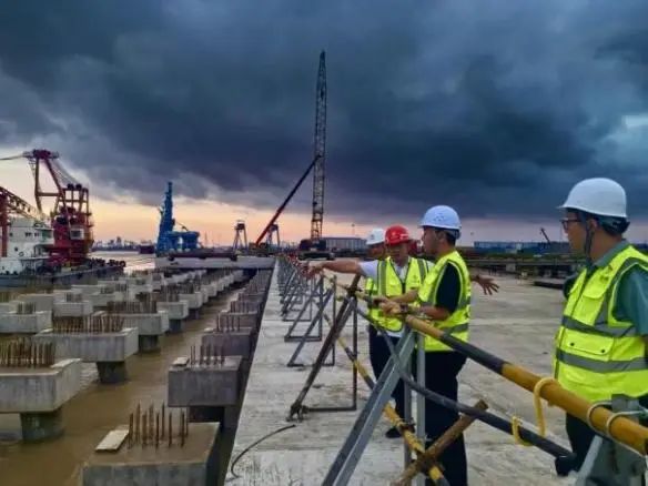 “臺(tái)風(fēng)‘竹節(jié)草’逼近,立即啟動(dòng)應(yīng)急預(yù)案!”7月30日夜,調(diào)度室的急促電話劃破寂靜。防臺(tái)防汛領(lǐng)導(dǎo)小組全員到崗,通過“船岸協(xié)同”機(jī)制將施工船舶拖至避風(fēng)港。安全總監(jiān)手持應(yīng)急燈,沿著濕滑的碼頭仔細(xì)巡查,每隔一小時(shí)便記錄下浪高的數(shù)據(jù),靴中積水與汗水交織。