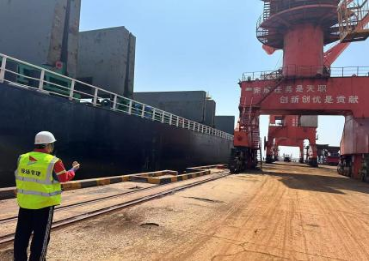 正午驕陽炙烤,地面溫度節(jié)節(jié)攀升。調(diào)度員的工作服早已被汗水浸透,緊貼脊背,但他們沒有絲毫懈怠,不停穿梭于碼頭前沿,實時調(diào)配生產(chǎn)資源?!芭_風(fēng)預(yù)警,今晚22點前必須卸空離泊避風(fēng)!”調(diào)度員抹去額角的汗珠,目光如釘般鎖定作業(yè)進(jìn)度,確??崾钪卵b卸效率不降分毫。
