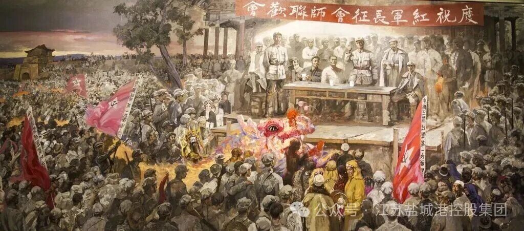 甘肅會寧,紅軍長征勝利紀(jì)念館,反映會寧會師大會場景的油畫。