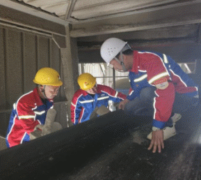 搶修現(xiàn)場的“洋陽”班組,天生一副消化艱難的“鋼鐵胃”。寒夜里,他們蜷在提升機(jī)進(jìn)料口的鐵殼內(nèi),用凍僵的手指摳出堵塞的凍渣;酷暑中,汗水把工服焊成第二層皮膚?!把箨枴卑嘟M成員分工明確、配合默契,始終保持高度的責(zé)任感和使命感,發(fā)揚(yáng)“不怕苦、不怕累”碼頭人精神,高質(zhì)高效完成各項(xiàng)困難任務(wù)。年初那場零下的搶修,五小時(shí)的鏖戰(zhàn)讓手套結(jié)冰碴,卻沒人丟下一句怨言—碼頭上“目標(biāo)必達(dá)”的承諾,從來不是貼在墻上的標(biāo)語,而是烙進(jìn)骨血的基因。