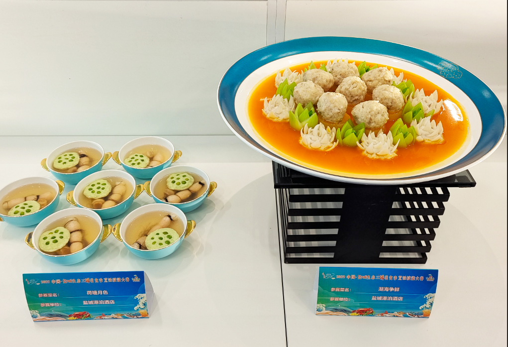 為弘揚(yáng)鹽城地方美食文化,進(jìn)一步推動(dòng)鹽城市旅游業(yè)發(fā)展,中國飯店協(xié)會(huì)于2023年5月17日在射陽縣黃沙港舉辦2023鹽城生態(tài)三鮮(海鮮、湖鮮、河鮮)美食季烹飪技能大賽。當(dāng)天,來自各地的參賽選手同臺(tái)競技,評委從作品的色、香、味、形、營養(yǎng)等方面進(jìn)行綜合評價(jià),經(jīng)過激烈的角逐,文旅集團(tuán)港泊半島酒店行政總廚李勇憑借“荷塘月色”“湖海爭鮮”兩項(xiàng)菜品喜獲此次大賽銀獎(jiǎng)。