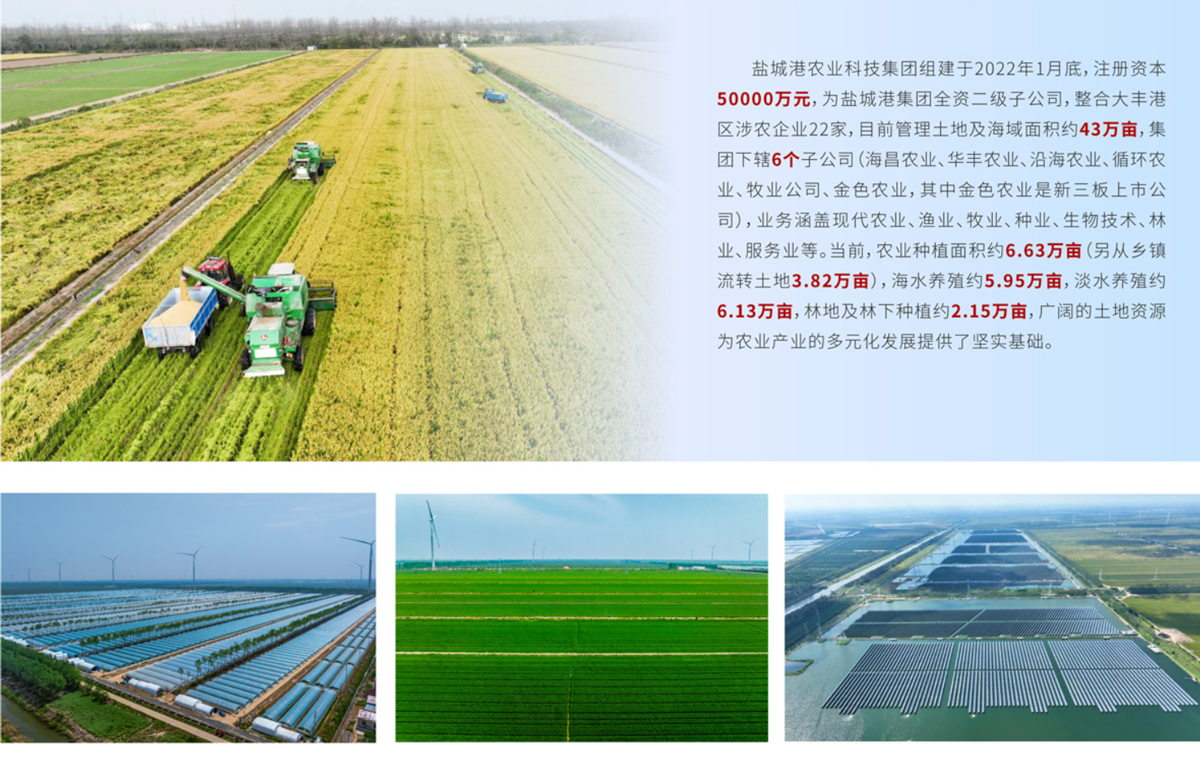 近年來,公司發(fā)揮資源優(yōu)勢,大力發(fā)展現(xiàn)代農(nóng)業(yè)、數(shù)字農(nóng)業(yè)、生態(tài)農(nóng)業(yè)、智慧農(nóng)業(yè),引導(dǎo)傳統(tǒng)養(yǎng)殖業(yè)、種植業(yè)、林業(yè)向高附加值產(chǎn)業(yè)過渡,錨定打造全國爭先、全省領(lǐng)先、全市率先的“現(xiàn)代科技農(nóng)業(yè)樣板區(qū)”的目標(biāo),高標(biāo)準(zhǔn)推進數(shù)字化精品種植示范區(qū)、機械化高效農(nóng)業(yè)示范區(qū)、循環(huán)化綠色種養(yǎng)示范區(qū)、生態(tài)化水產(chǎn)養(yǎng)殖示范區(qū)、低碳化綠色能源示范區(qū)、多元化林下經(jīng)濟示范區(qū)“六大示范區(qū)”建設(shè),打造農(nóng)業(yè)發(fā)展“新高地”,為鹽城港高質(zhì)量發(fā)展賦能助力,為提升鹽城市農(nóng)業(yè)現(xiàn)代化水平作出貢獻。