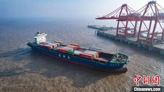 裝載農(nóng)副產(chǎn)品的貨輪駛向上海。 鹽城港集團(tuán)供圖