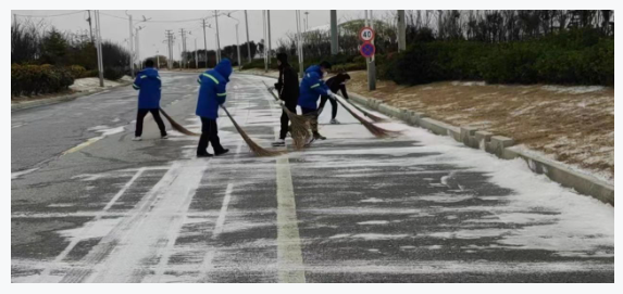 銀裝素裹齊上陣,盡顯港口人風(fēng)采。隨著2023年的第一場大雪降臨,雪花漫天飛舞,處處銀裝素裹。瑞雪帶來美景的同時(shí),也為出行安全和設(shè)備安全帶來隱患。為全面恢復(fù)港區(qū)的安全出行和生產(chǎn)生活,保障港區(qū)道路通行順暢和生產(chǎn)設(shè)備安全,鹽城港射陽港區(qū)以雪為令,迅速安排部署,對(duì)港區(qū)主干道開展除冰鏟雪行動(dòng)。行動(dòng)過程中全員參加,明確責(zé)任路段,提前準(zhǔn)備融雪劑和掃雪工具,有條不紊地將路面冰雪逐一清掃干凈,通過2小時(shí)的奮戰(zhàn),最大程度降低了路面冰雪帶來的安全隱患。