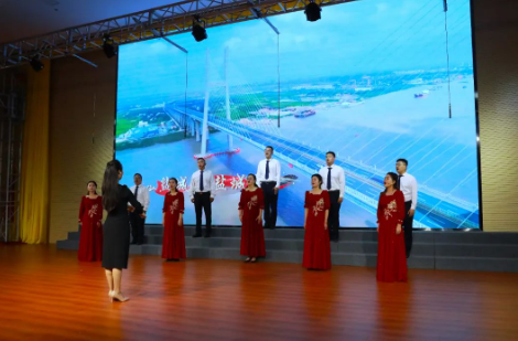 “資產(chǎn)公司作為鹽城港大家庭的年輕成員,我們希望用激昂的歌聲、鏗鏘的節(jié)奏,把干事創(chuàng)業(yè)激情和敢挑重?fù)?dān)、對(duì)使命的不懈追求融入到表演中,熱情謳歌集團(tuán)三年來(lái)的光輝歷程和驕人成就,充分展現(xiàn)出資產(chǎn)公司凝心聚力、砥礪奮進(jìn)的新氣象、新風(fēng)貌?!辟Y產(chǎn)公司代表隊(duì)領(lǐng)隊(duì)如是說(shuō)。伴隨著一首激昂的《保衛(wèi)黃河》,資產(chǎn)公司代表隊(duì)的成功演繹將現(xiàn)場(chǎng)氣氛推向了高潮。