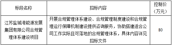 2.項目名稱:江蘇鹽城港能源發(fā)展集團有限公司合規(guī)管理體系建設(shè)項目。