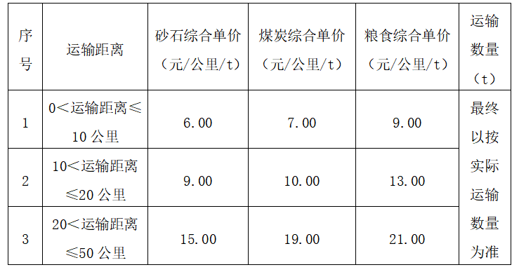 普通貨物運輸(入圍供應(yīng)商上限:4家)。