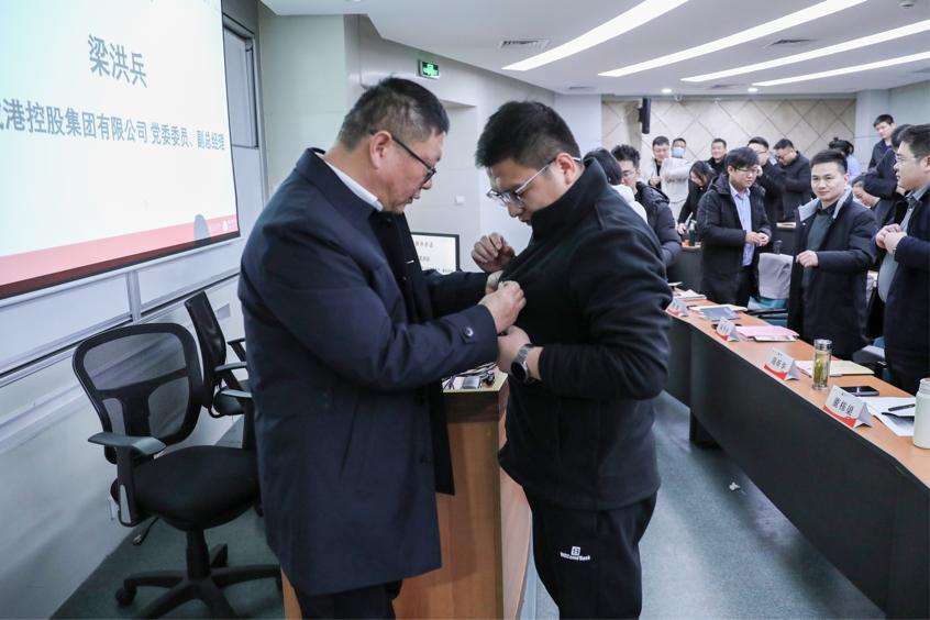 在開班儀式上,陳剛、梁洪兵親手為學(xué)員代表佩戴上海交通大學(xué)?;?,這標(biāo)志著學(xué)員們正式加入上海交通大學(xué)大家庭,開啟全新的學(xué)習(xí)旅程。