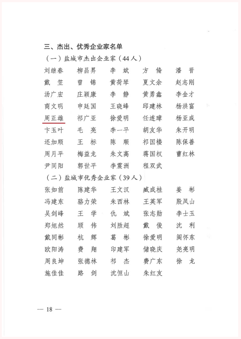 2月7日,春節(jié)后上班第一天,從全市勇當(dāng)沿海地區(qū)高質(zhì)量發(fā)展排頭兵推進(jìn)會暨2021年度綜合考核表彰大會上傳來好消息,集團(tuán)榮獲2021年度“爭星創(chuàng)優(yōu)”活動“服務(wù)業(yè)五星企業(yè)”榮譽(yù)稱號,集團(tuán)黨委書記、董事長、總經(jīng)理周正雄榮獲“鹽城市杰出企業(yè)家”榮譽(yù)稱號。