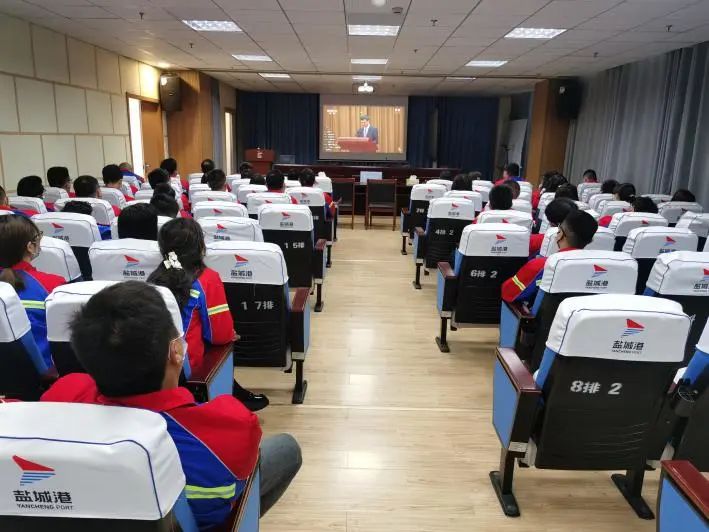 射陽港區(qū)工作人員集中收看大會實(shí)況直播