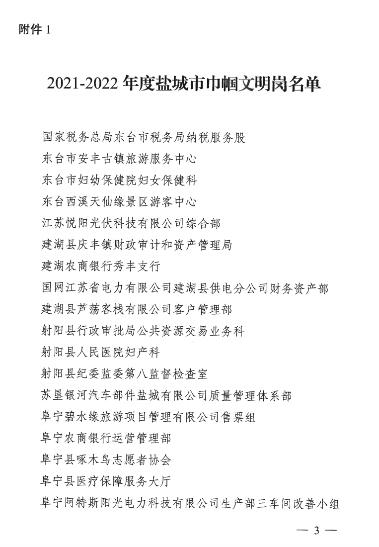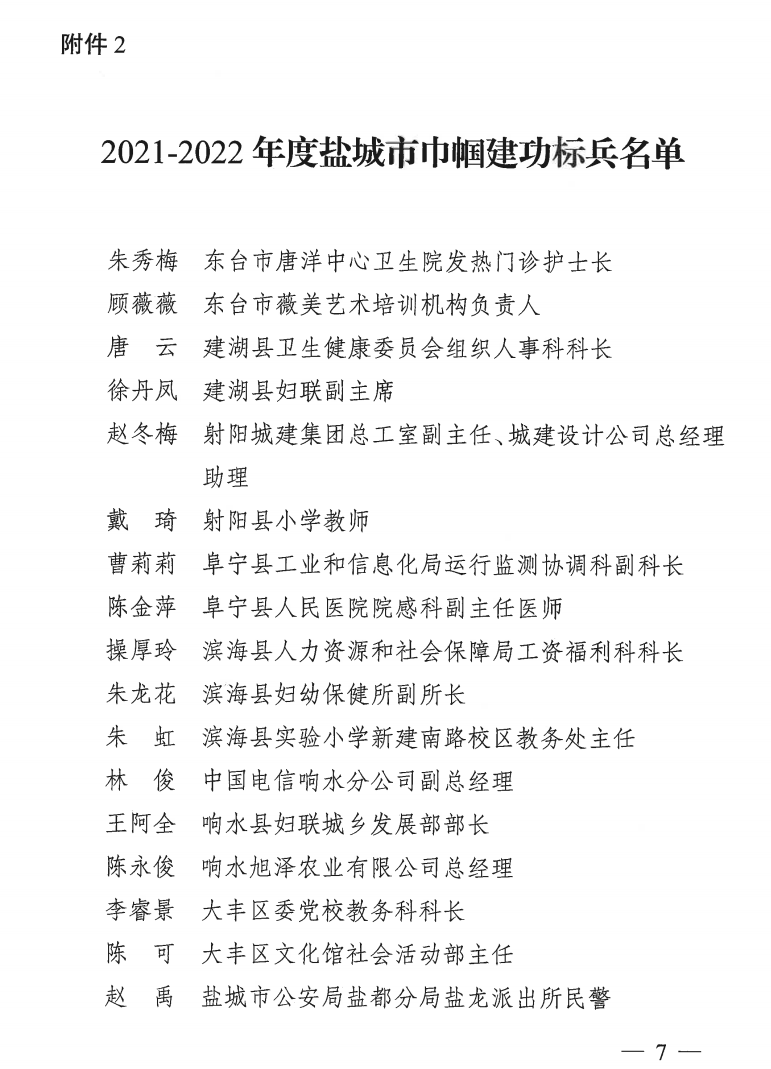 ????近日,市城鎮(zhèn)婦女“巾幗建功”活動(dòng)領(lǐng)導(dǎo)小組、市農(nóng)村婦女“雙學(xué)雙比”競(jìng)賽活動(dòng)領(lǐng)導(dǎo)小組、市婦女聯(lián)合會(huì)聯(lián)合發(fā)布《關(guān)于命名2021-2022年度全市城鄉(xiāng)婦女崗位建功先進(jìn)集體(個(gè)人)的決定》,鹽城港智慧港口公司海燕班組榮獲“2021-2022年度鹽城市巾幗文明崗”榮譽(yù)稱號(hào),鹽城港項(xiàng)目建設(shè)管理咨詢公司黨總支書記、執(zhí)行董事、總經(jīng)理劉春燕榮獲“2021-2022年度鹽城市巾幗建功標(biāo)兵”榮譽(yù)稱號(hào)。