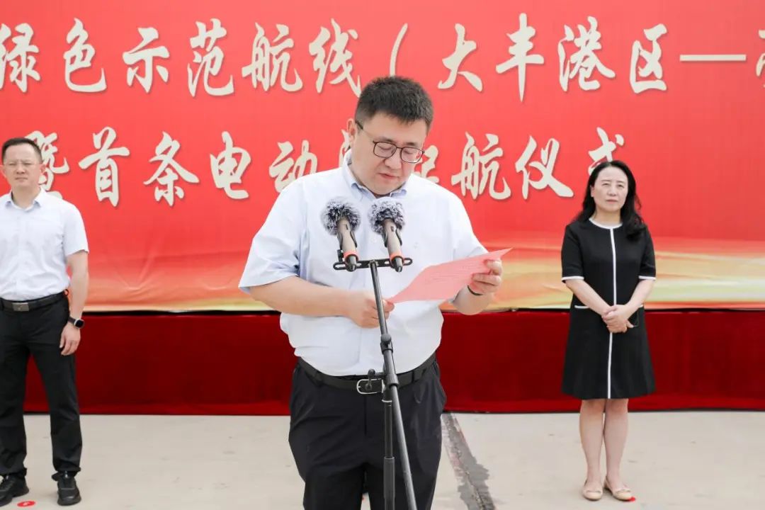 為積極策應(yīng)“水運江蘇”建設(shè),大力發(fā)展綠色低碳內(nèi)河航運,推動鹽城港航事業(yè)高質(zhì)量發(fā)展。8月6日,鹽城港集團隆重舉行內(nèi)河集裝箱綠色示范航線開航暨首條電動船起航儀式。集團黨委副書記、董事、總經(jīng)理陸帥,集團副總經(jīng)理袁欣,集團黨委委員、副總經(jīng)理孫永峰,相關(guān)單位及部門負責同志,船貨代企業(yè)代表等參加。
