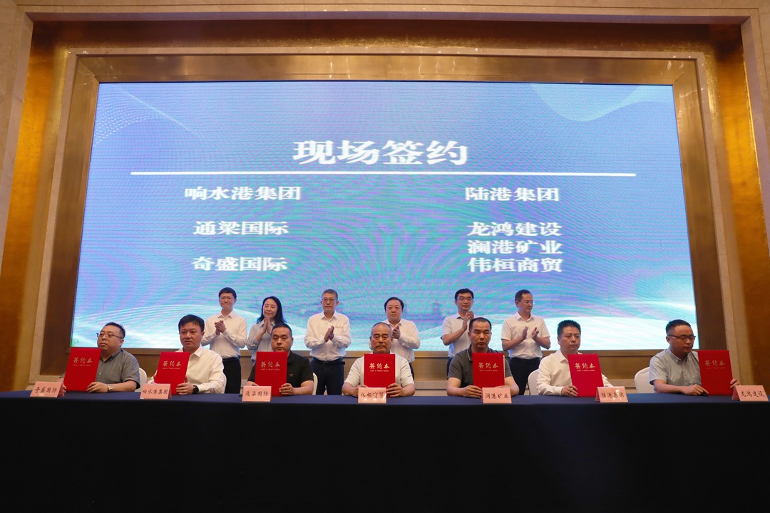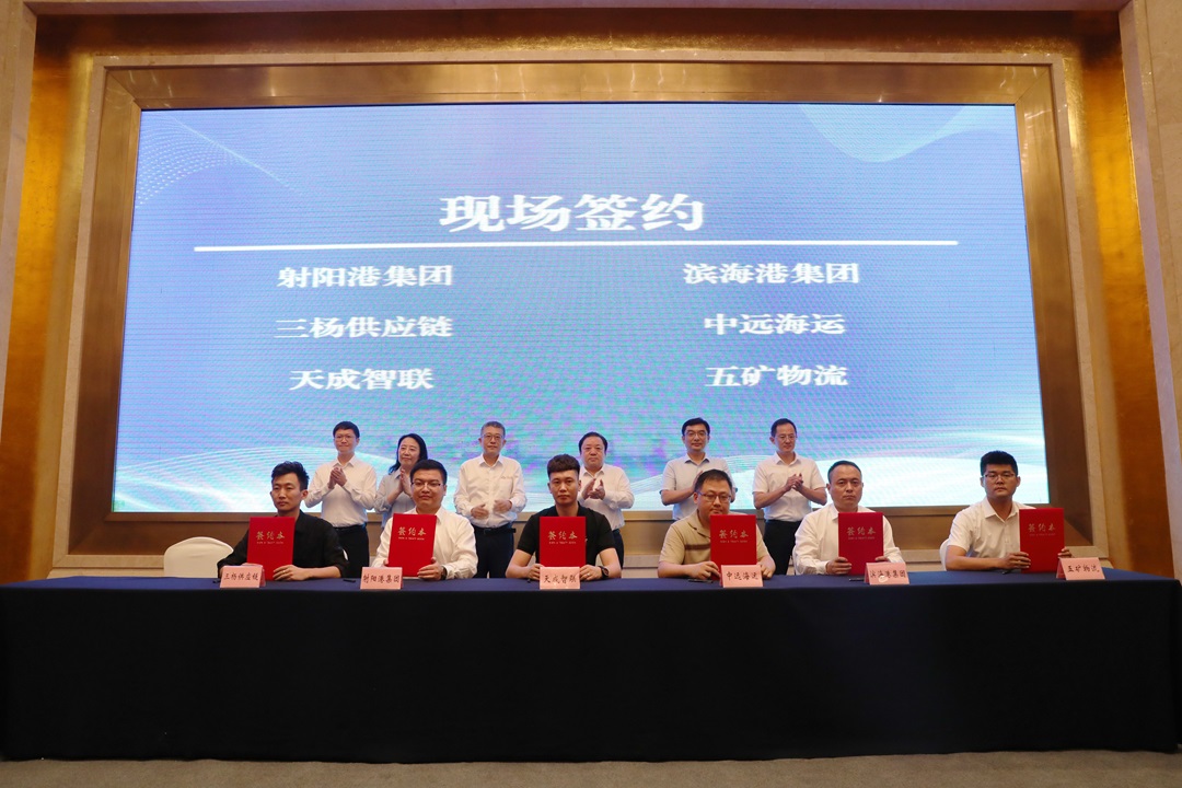 活動(dòng)現(xiàn)場(chǎng),大豐港區(qū)、濱海港區(qū)、射陽港區(qū)、響水港區(qū)、航運(yùn)、陸港、保稅、供應(yīng)鏈等相關(guān)負(fù)責(zé)同志作業(yè)務(wù)推介并與企業(yè)代表簽訂合作協(xié)議。