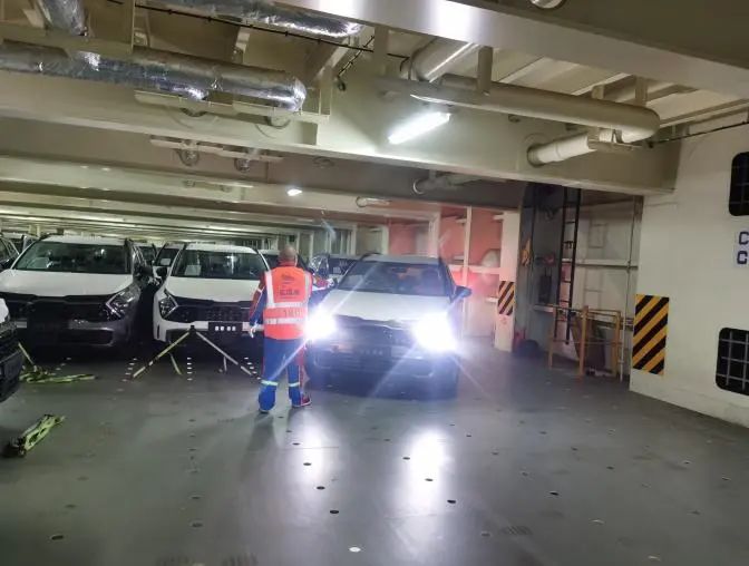 業(yè)務開展期間,工作人員密切配合,對每臺車輛進行固定和檢查,熟練地進行綁扎工作,確保車輛在運輸過程中不會發(fā)生絲毫移動,仔細查驗車輛的外觀和內(nèi)部設備,不放過任何一個可能存在的問題,同時安排專人專崗緊盯作業(yè)流程,嚴格把關汽車裝船及加固作業(yè),反復檢查每一個螺栓的緊固程度、每一根繩索的拉力大小,確保萬無一失,將高標準作業(yè)貫穿于卸車、驗車、收車、裝船、加固等各個環(huán)節(jié)。