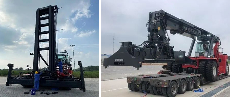 集裝箱堆高機和正面起重機廣泛用于碼頭、堆場的集裝箱裝卸、空箱堆疊、水平運輸等,它具有機動靈活、操作方便、穩(wěn)定性好、輪壓較底、堆碼層數高等優(yōu)點。