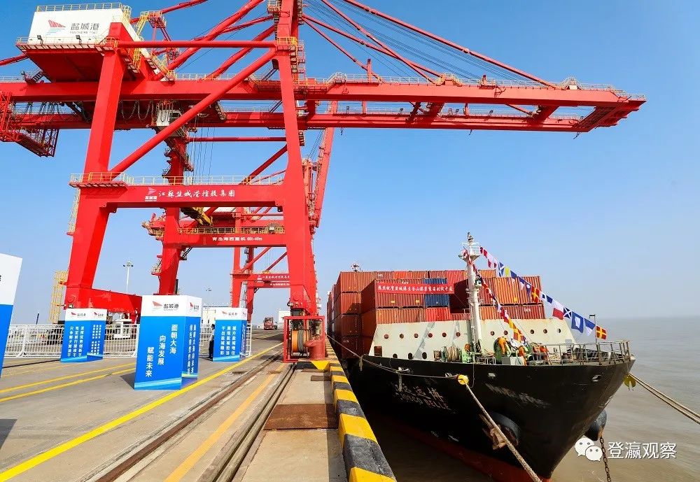 ▲鹽城港至韓國釜山港國際直達集裝箱班輪航線正式開航