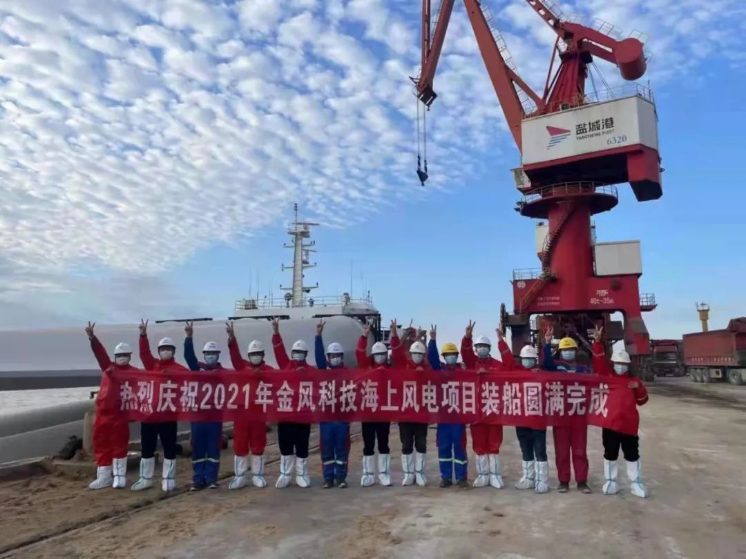 鹽城港大豐港區(qū)港口公司2021年 金風(fēng)科技海上風(fēng)電項(xiàng)目裝船圓滿完成