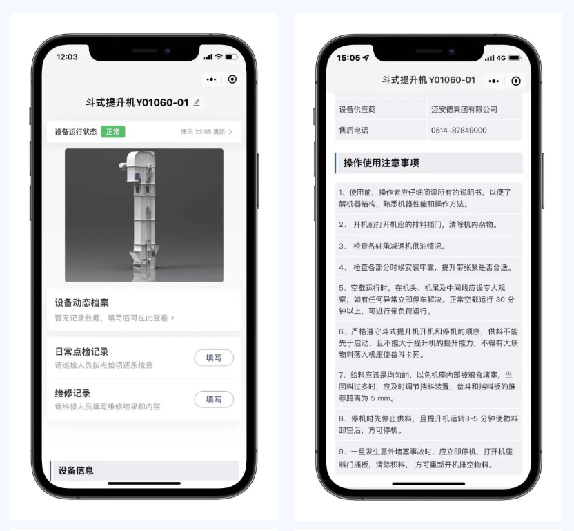 巡檢及維保人員只需通過微信掃描設(shè)備上的二維碼,即可對照小程序檢查條目逐條確認并記錄工作內(nèi)容,快速記錄設(shè)備狀態(tài)、檢修設(shè)備,也可以根據(jù)小程序中顯示的設(shè)備常見故障以及排除方法,第一時間判斷設(shè)備問題并及時通知機務(wù)進行修復(fù),及時消除存在隱患。