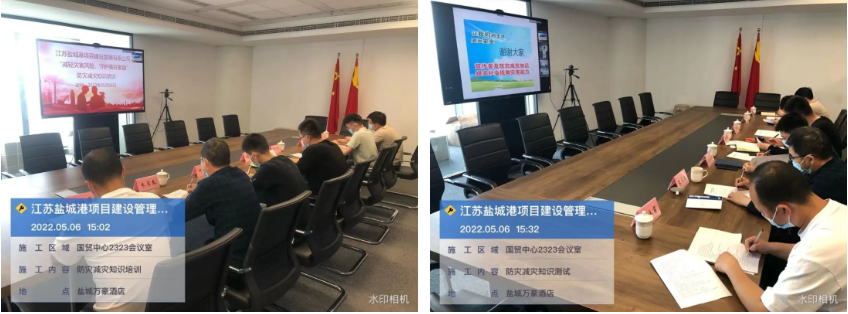 項目公司緊扣“減輕災害風險,守護美好家園”活動主題,在各代管項目施工現(xiàn)場顯眼位置,通過懸掛宣傳橫幅等形式,普及防災減災知識,提高施工作業(yè)人員防災減災意識,積極營造防災減災良好氛圍,切實起到溫馨提示和警示教育的作用。同時組織召開項目部專題會議,要求各項目做好施工作業(yè)人員的防災減災知識培訓、應急演練及應急物資儲備工作,對相關要求進行再明確。