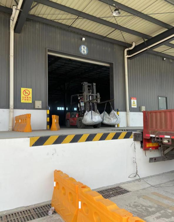 2件噸袋被叉車(chē)順利從車(chē)廂卸下