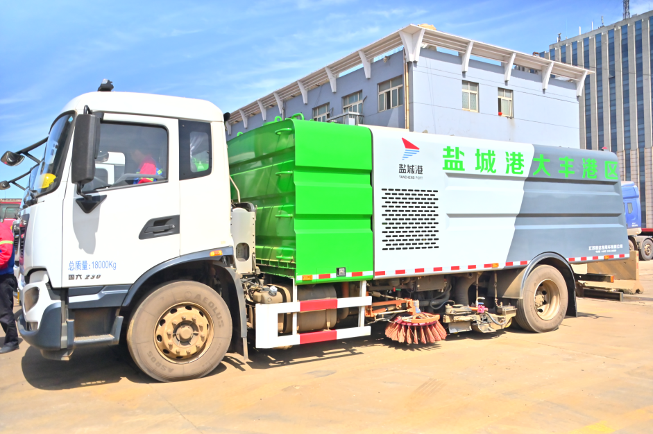 Hi!大家好。我是來自鹽城港港口公司的一臺環(huán)保洗掃車,別看我和普通環(huán)保車的外觀差不多,我的工作任務(wù)可和它們不一樣,我每天要對鹽城港大豐港區(qū)道路進(jìn)行洗掃作業(yè)和防塵抑塵。我是清潔工作中的好幫手,每天都讓港區(qū)恢復(fù)煥然一新。