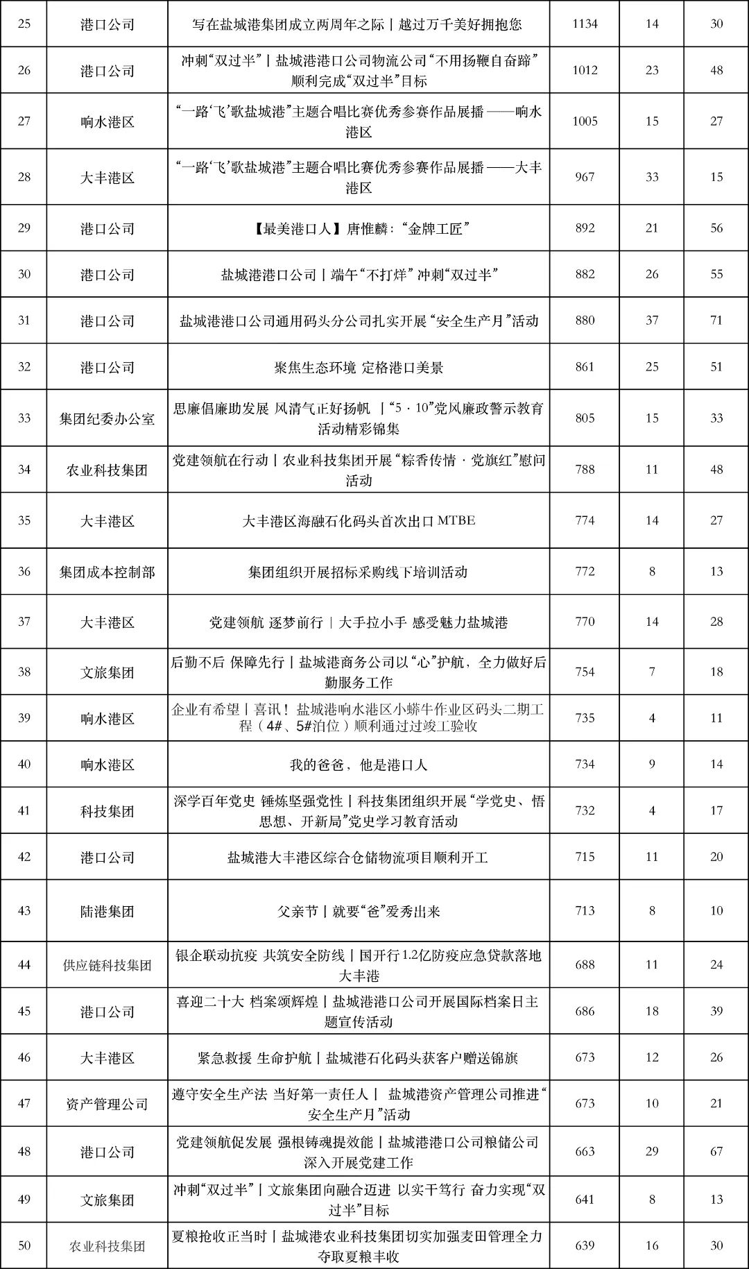 下面,讓我們一起回顧六月份鹽城港集團(tuán)微信公眾平臺的精彩表現(xiàn)。