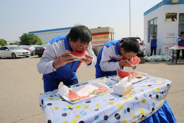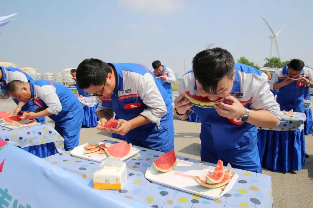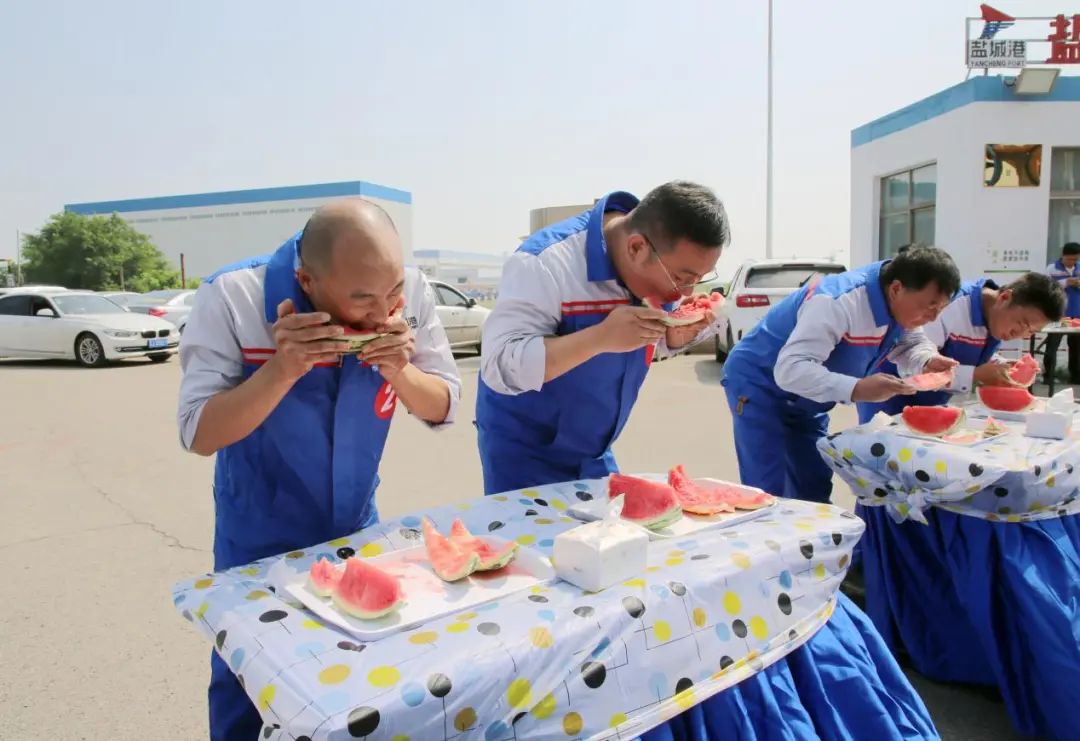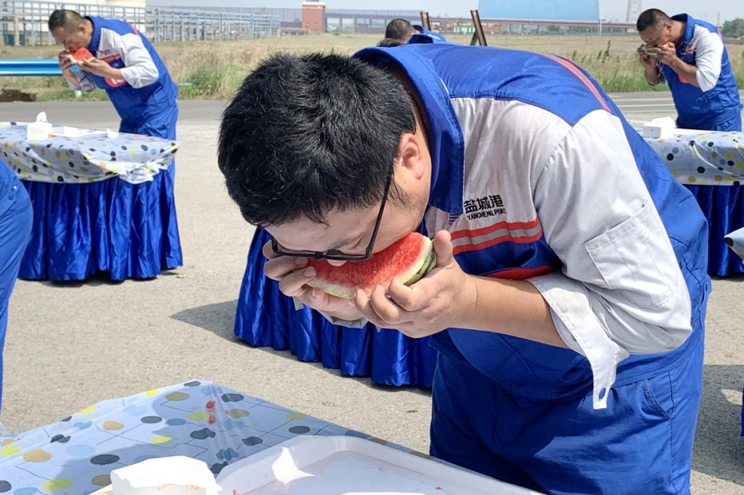 剛剛過去了小暑,大暑又匆忙到來,地表熱力值持續(xù)爆表,大豐港區(qū)一線職工不懼酷暑,堅(jiān)守一線,與炎熱打上了一場持久戰(zhàn)。在這炎熱的酷暑時節(jié),鹽城港大豐港區(qū)滿載著“一家人、在一起、手足情、過日子”的深情關(guān)愛,給一線的職工帶來了一場西瓜的狂歡之旅,在大豐港區(qū)石化碼頭舉行“瓜分甜蜜清涼一夏”吃西瓜比賽,和順國貿(mào)、中南匯、油品化工碼頭、成品油一線職工代表參賽。