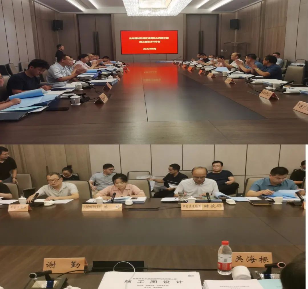 會上,射陽港區(qū)就項目建設(shè)必要性及項目概況進行了簡要介紹,項目設(shè)計和審查單位對施工圖設(shè)計和審查情況進行了匯報和說明。隨后,與會專家和相關(guān)主管部門進行充分討論,并交換了意見,一致同意通過鹽城港射陽港區(qū)通用碼頭四期工程施工圖設(shè)計方案。