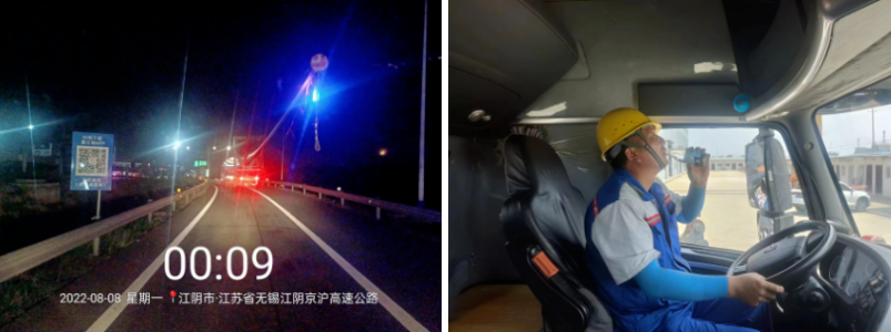 面對近期連續(xù)高溫天氣,車隊管理人員通過合理安排裝卸、運輸時間,避開高溫風(fēng)險,利用早晨裝車、晚上發(fā)車、后半夜到達目的地的方式進行作業(yè)。作業(yè)人員抵達江陰后,為保證所運設(shè)備安全,車隊管理人員全部在車內(nèi)休息。