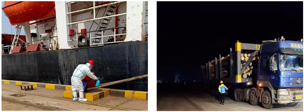 各辦公區(qū)域和生產(chǎn)場(chǎng)所按規(guī)定統(tǒng)一采購(gòu)消毒液,對(duì)人員密集活動(dòng)區(qū)域進(jìn)行防疫消殺工作,特別在門崗、磅房、公用衛(wèi)生間、候工室等公共場(chǎng)所進(jìn)行定期消殺。碼頭靠船作業(yè)嚴(yán)格遵照《港口及其一線人員新冠肺炎疫情防控工作指南(第十版)》要求,嚴(yán)格執(zhí)行碼頭作業(yè)消殺程序,將“非必要不登船”、開展健康承諾、離港后核酸檢測(cè)等工作落細(xì)落實(shí)。