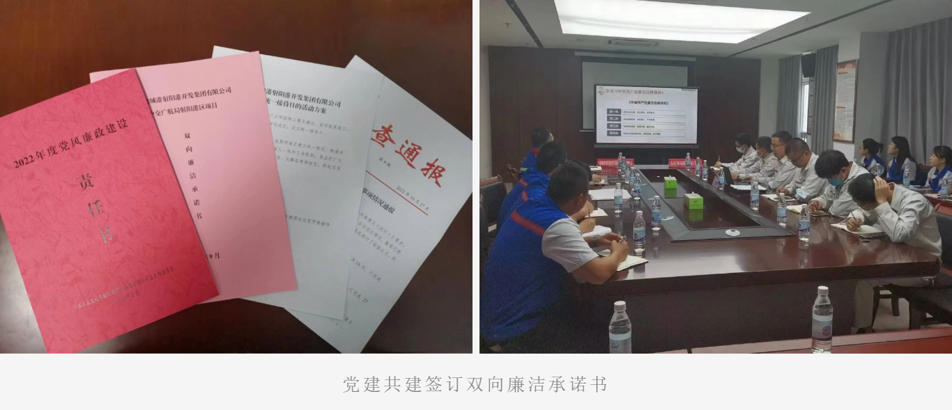 出新招,抓住重點,有的放矢造濃清廉之風。緊盯工程領域,射陽港區(qū)紀檢聚焦合作方、第三方企業(yè)在港區(qū)存在的痛點、難點和堵點,找準切入點,對癥下藥。黨建共建引領創(chuàng)建清廉工地。針對工程項目領域易發(fā)腐敗現(xiàn)象問題,港區(qū)黨總支與中交廣航射陽港區(qū)項目部黨支部開展黨建共建活動,簽訂了《雙向廉潔責任書》,通過互學互促互督系列活動,從源頭上預防和遏制腐敗,清正廉潔建項目;開展專項督查,打造廉潔文化。建立廉潔文化走廊,建成紀法廣場陣地,把廉潔文化元素展示在港區(qū)日常工作生活環(huán)境中,造濃港區(qū)廉潔氛圍。針對工程建設領域多發(fā)的欠薪現(xiàn)象,港區(qū)紀檢多次對港區(qū)各在建工程項目開展農(nóng)民工工資支付情況專項督查,保證農(nóng)民工合法權(quán)益。改進提升作風。建立周五統(tǒng)一接待日制度,傾聽港區(qū)職工群眾心聲,真正做到協(xié)調(diào)矛盾,解決問題,切實維護港區(qū)經(jīng)營環(huán)境的穩(wěn)定;開展庸、懶、散、浮、拖問題專項整治活動,強化全體員工的紀律觀念,進一步樹立勤廉之風。