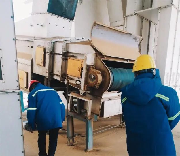 在清倉(cāng)機(jī)使用過(guò)程中,維修班與技術(shù)人員針對(duì)不同程度出現(xiàn)的絞龍安裝位置不正、結(jié)構(gòu)變形等問(wèn)題,科學(xué)分析、大膽實(shí)踐,對(duì)故障點(diǎn)及整個(gè)設(shè)備部件配件進(jìn)行深入剖析,不斷攻克維修難題,有效保障糧儲(chǔ)公司設(shè)備設(shè)施運(yùn)行和管理質(zhì)量,為全年安全生產(chǎn)保駕護(hù)航。