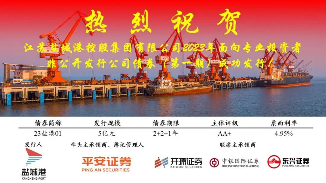 2月23日,鹽城港集團(tuán)2023年度第一期私募公司債成功發(fā)行,金額5億元,發(fā)行利率4.95%。本期私募公司債為集團(tuán)本部私募產(chǎn)品首次公開市場亮相,進(jìn)一步提振了金融機構(gòu)對鹽城港集團(tuán)發(fā)展的信心,鞏固了集團(tuán)在資本市場的口碑與信譽。