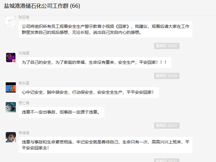 港儲(chǔ)石化利用班前晨會(huì)時(shí)間,組織職工觀看安全生產(chǎn)警示教育視頻,進(jìn)一步增強(qiáng)職工風(fēng)險(xiǎn)防范意識(shí),牢固樹立起“沒有安全,一切都是零”的思想觀念。職工紛紛表達(dá)了對(duì)安全生產(chǎn)的決心和對(duì)安全生產(chǎn)堅(jiān)定不移的信念,在思想上完成“要我安全”到“我要安全”的轉(zhuǎn)變。