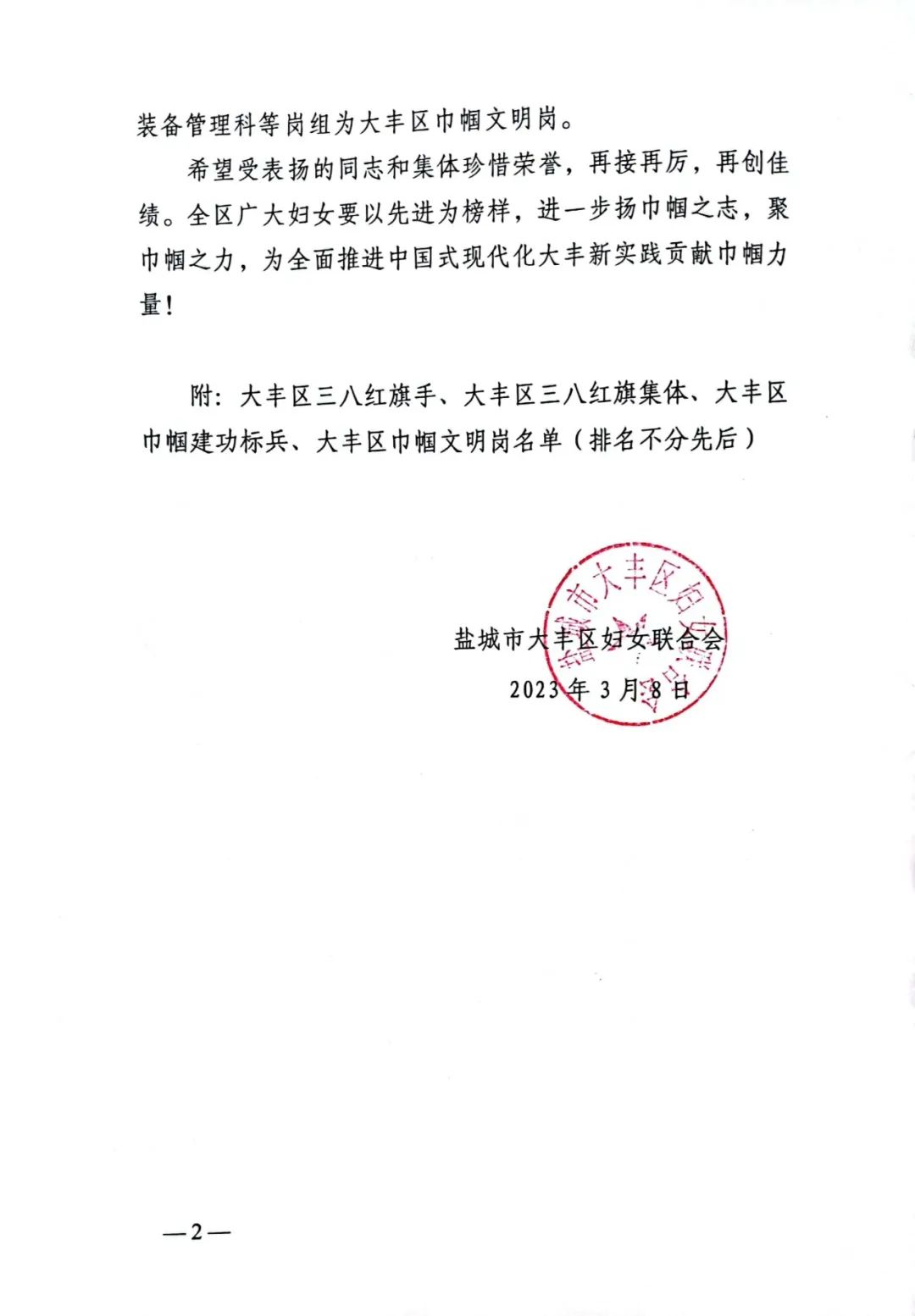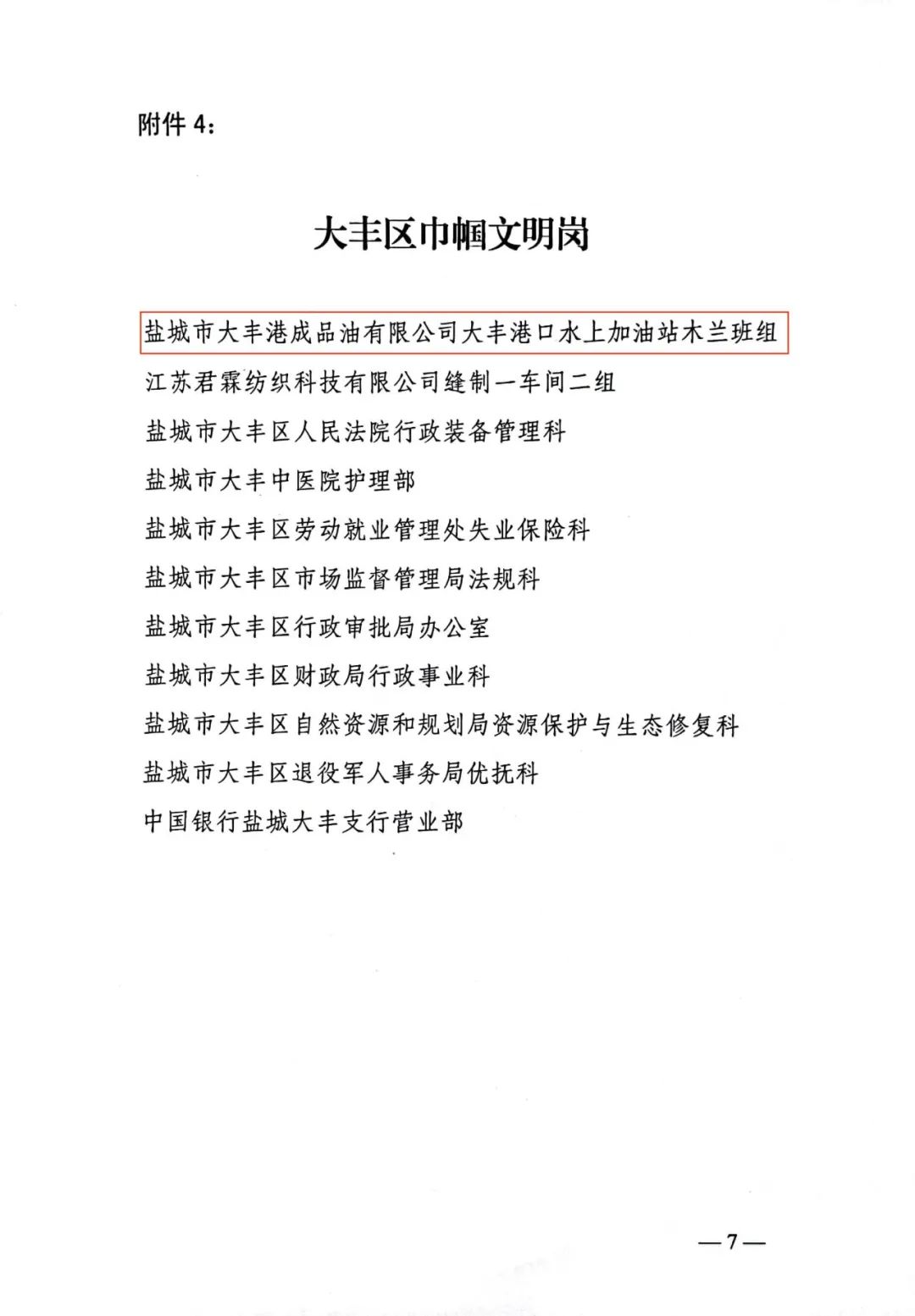 近日,大豐區(qū)婦女聯(lián)合會發(fā)表《關(guān)于表揚2022年度大豐區(qū)三八紅旗手(集體)和大豐區(qū)巾幗建功標兵、巾幗文明崗的通報》,鹽城港大豐港區(qū)成品油公司水上加油站“木蘭”班組榮獲“巾幗文明崗”榮譽稱號,班組成員王亞敏榮獲“三八紅旗手”榮譽稱號。