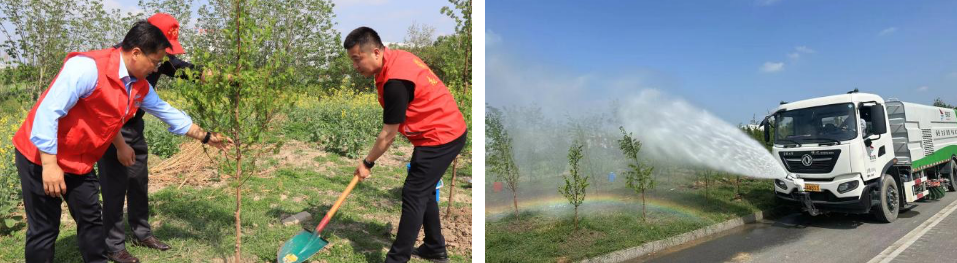 活動現(xiàn)場,大家三人一組,揮鍬挖坑、扶苗填土、提水澆灌,迎著春風(fēng)干勁十足,合力栽下一株株樹苗。經(jīng)過一番辛勤勞動,100余株新栽種的水杉迎風(fēng)挺立、錯落有致,點(diǎn)綴出一派生機(jī)盎然的春日景象。