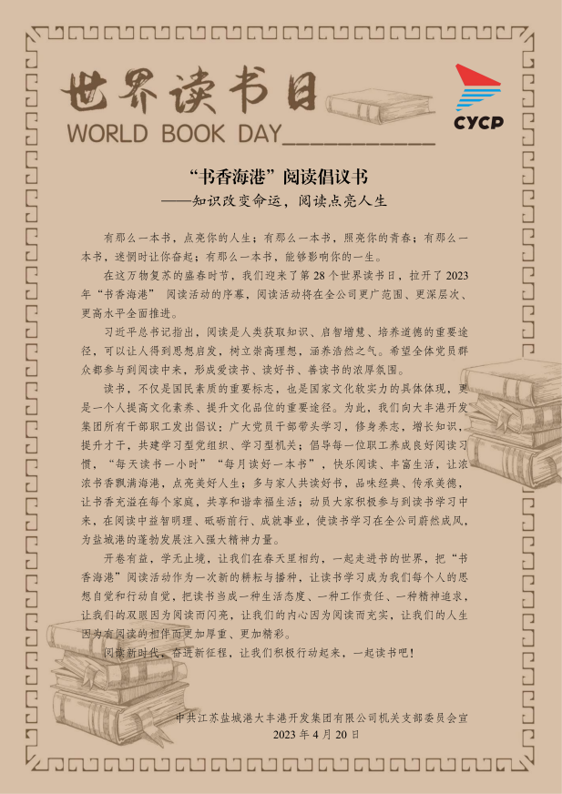 人間最美四“閱”天,不負(fù)春光書為伴。為深入學(xué)習(xí)貫徹黨的二十大精神,把握“學(xué)思想、強(qiáng)黨性、重實(shí)踐”的要求,連日來(lái),鹽城港大豐港開發(fā)集團(tuán)深入開展“學(xué)習(xí)二十大 書香潤(rùn)初心”讀書月活動(dòng),積極引導(dǎo)黨員、群眾養(yǎng)成“多讀書、讀好書、好讀書”的良好習(xí)慣,使讀書學(xué)習(xí)在全公司蔚然成風(fēng),為鹽城港的蓬勃發(fā)展注入強(qiáng)大精神力量。