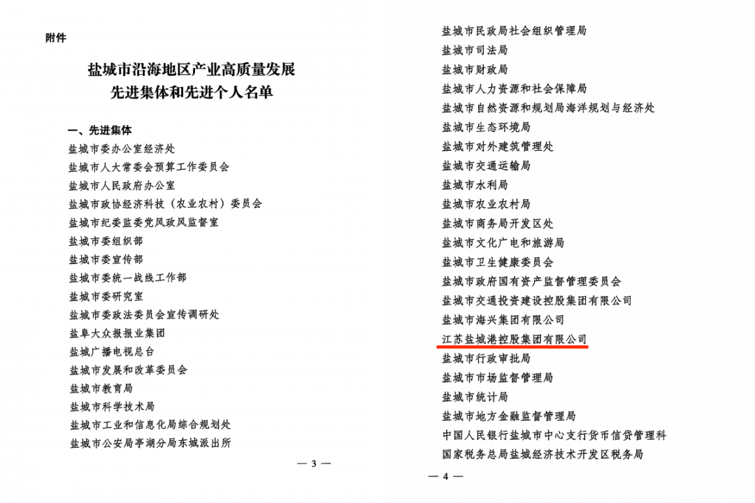 近日,市委、市政府發(fā)布關(guān)于表彰鹽城市沿海地區(qū)產(chǎn)業(yè)高質(zhì)量發(fā)展先進集體和先進個人的決定,集團獲“鹽城市沿海地區(qū)產(chǎn)業(yè)高質(zhì)量發(fā)展先進集體”榮譽稱號。