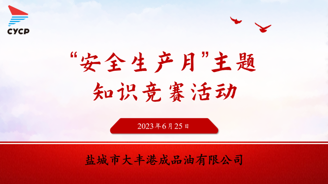 為深入推進(jìn)鹽城港“安全生產(chǎn)月”主題活動(dòng),營(yíng)造“人人講安全、個(gè)個(gè)會(huì)應(yīng)急”的良好氛圍,近日,鹽城港大豐港區(qū)成品油公司組織開展“安全生產(chǎn)月”主題知識(shí)競(jìng)賽,確保安全生產(chǎn)宣傳進(jìn)庫(kù)區(qū)、進(jìn)班組。